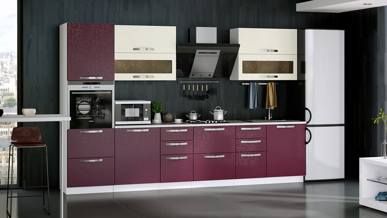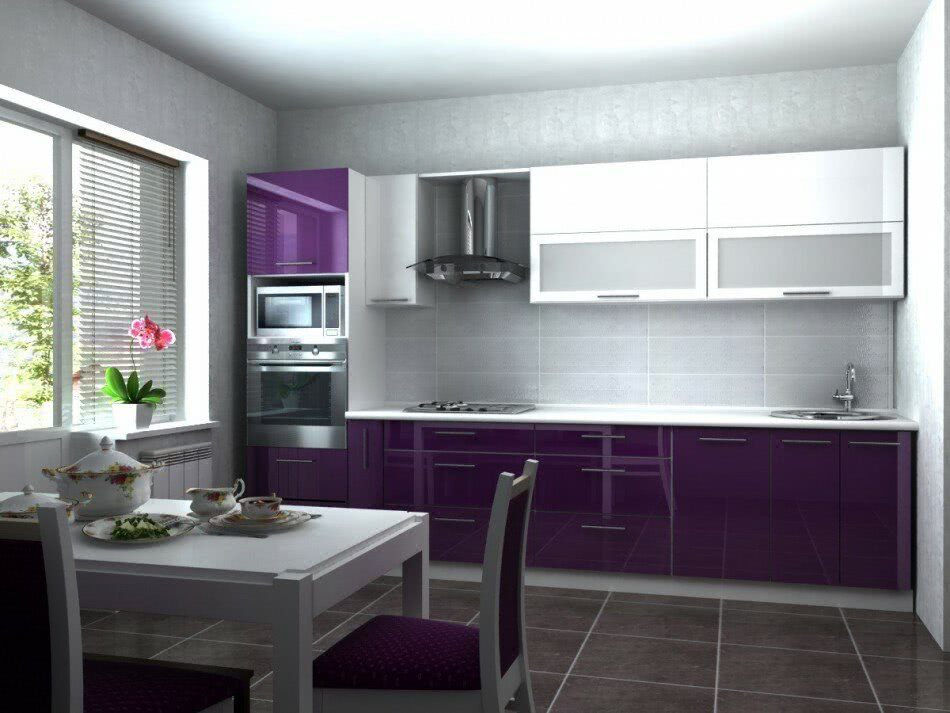 Фиолетовый гарнитур на кухне 2 на 3 метра