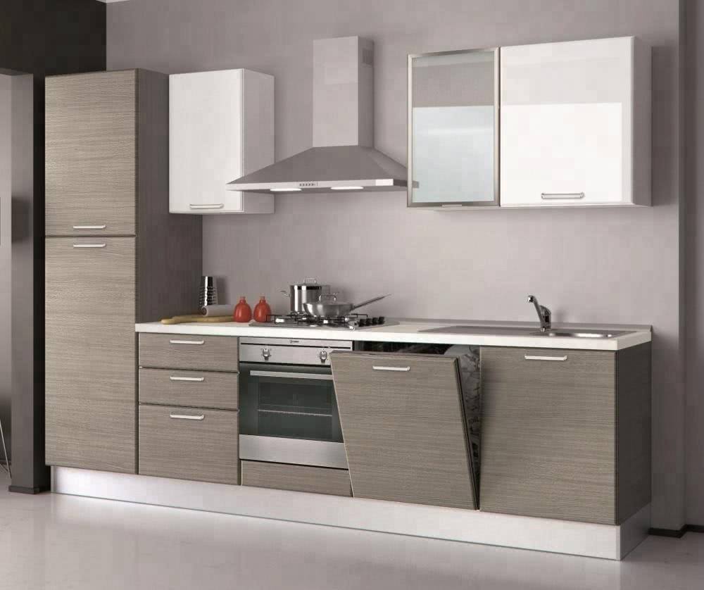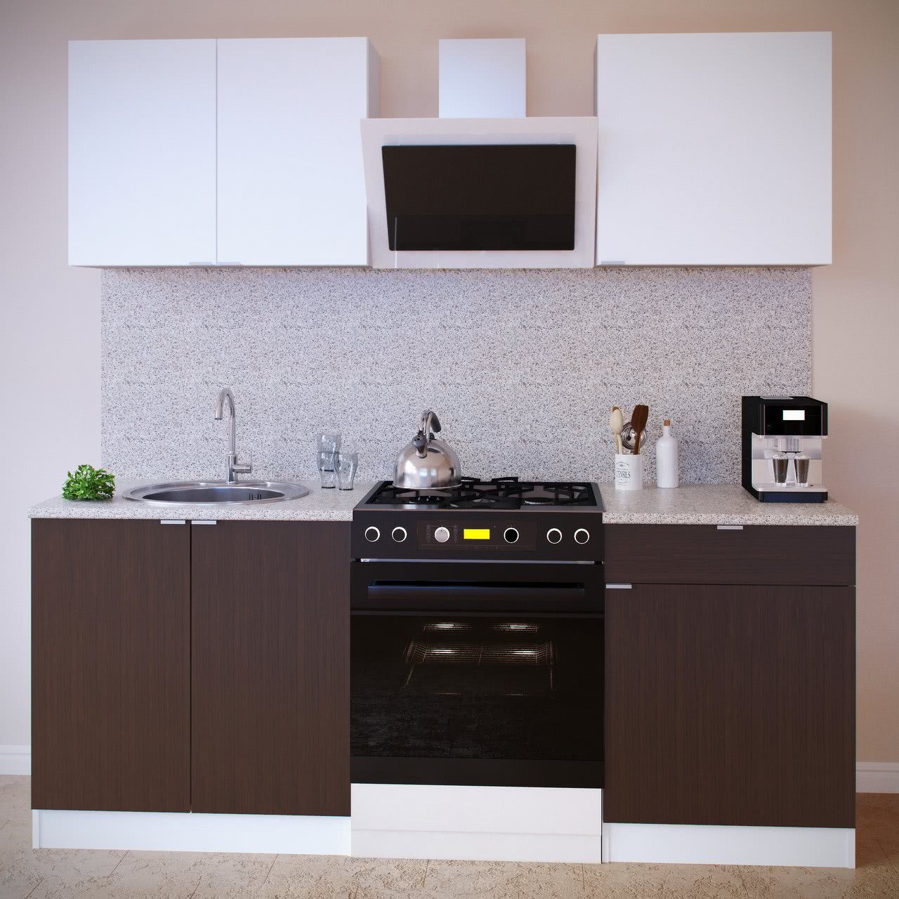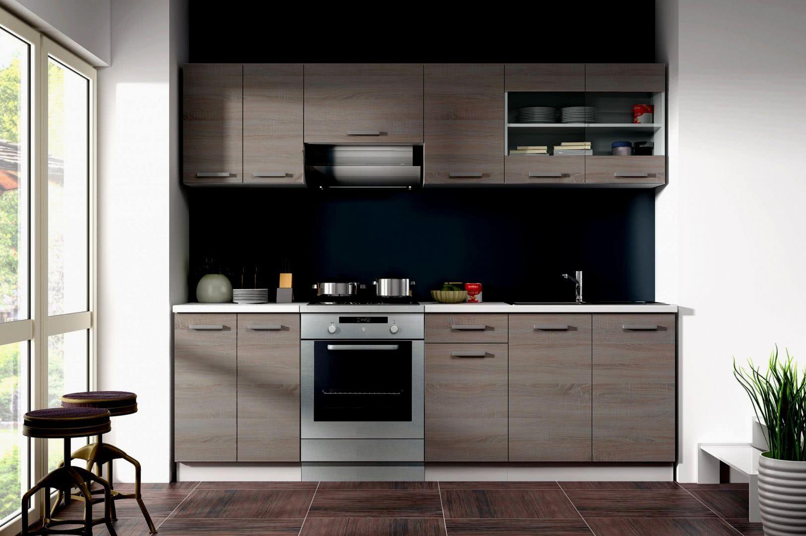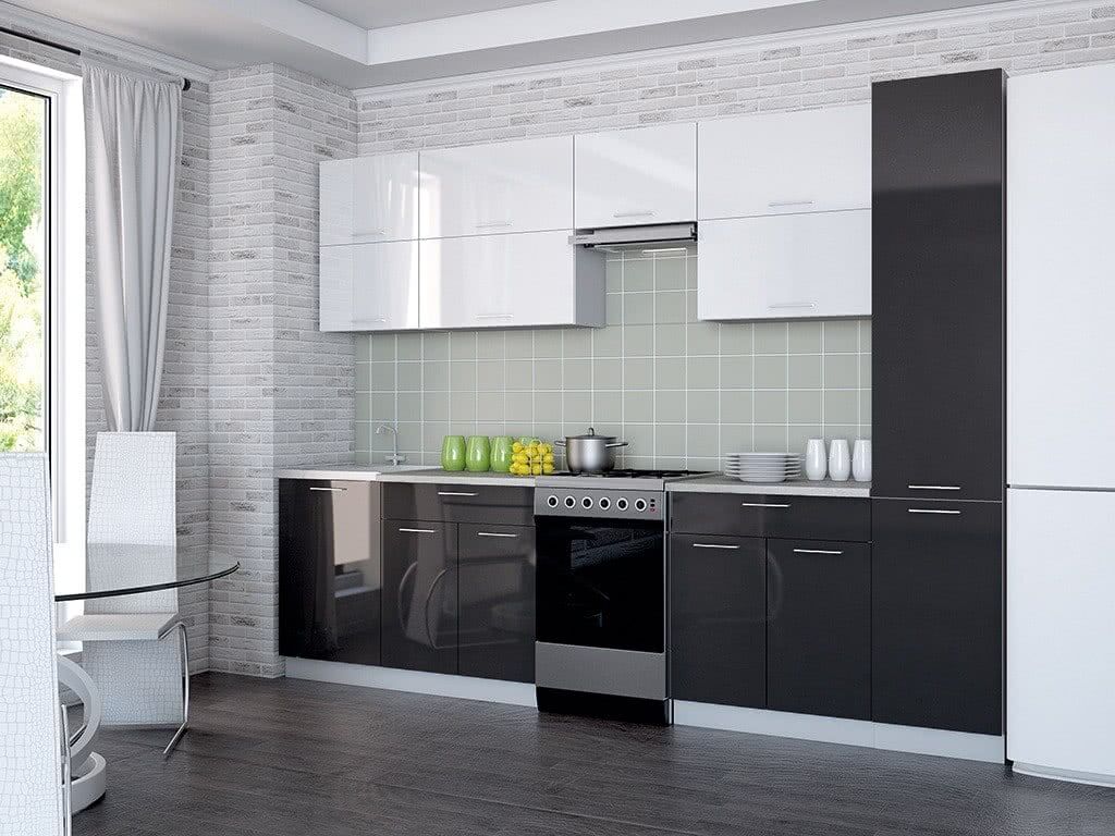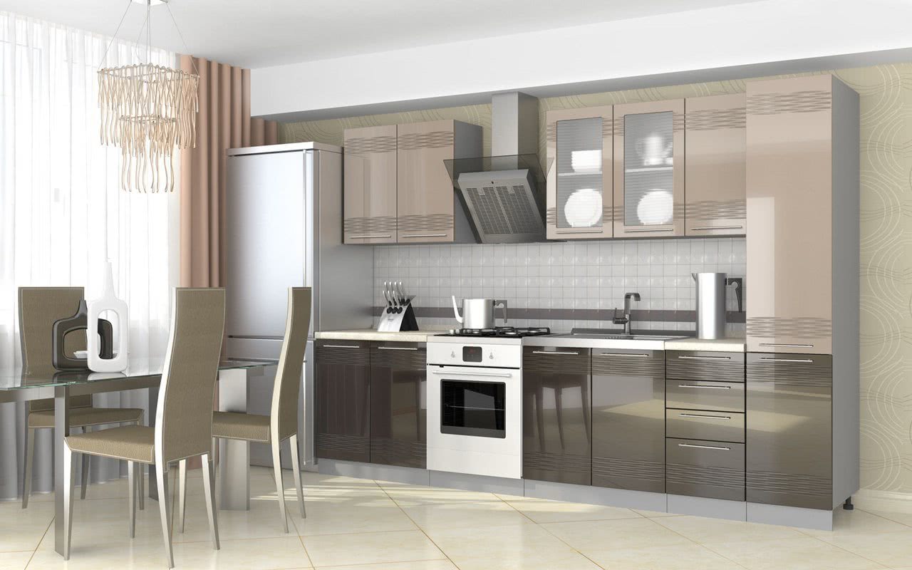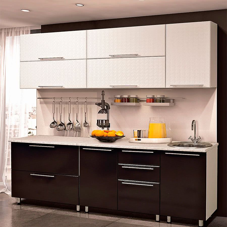 - Удобство. Лаконичное расположение всех модулей на одной прямой позволит быстро ориентироваться и находить нужные предметы и посуду. При этом достаточное количество модулей позволит разместить все необходимое для процесса готовки пищи и сервировки стола.