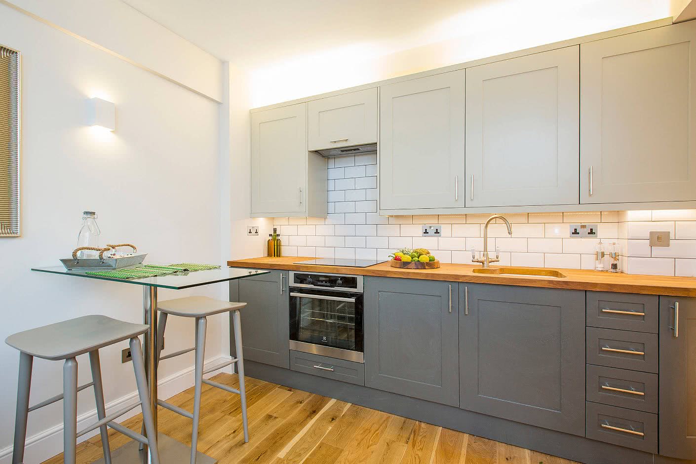Раздвижные — на узкой кухне нижние шкафы могут быть оборудованы раздвижной дверью, которая не открывается вперед, поэтому у вас не будет проблем с передвижением в этом небольшом пространстве.