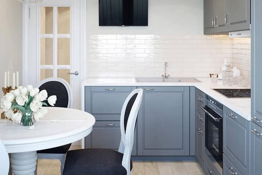 Если в кухне 2 на 3 метра планируется разместить и рабочую, и обеденную зону, то для неё подойдёт планировка линейного или углового типа. Желательно, чтобы гарнитур располагался у двери, а обеденная зона — в конце помещения, у окна.