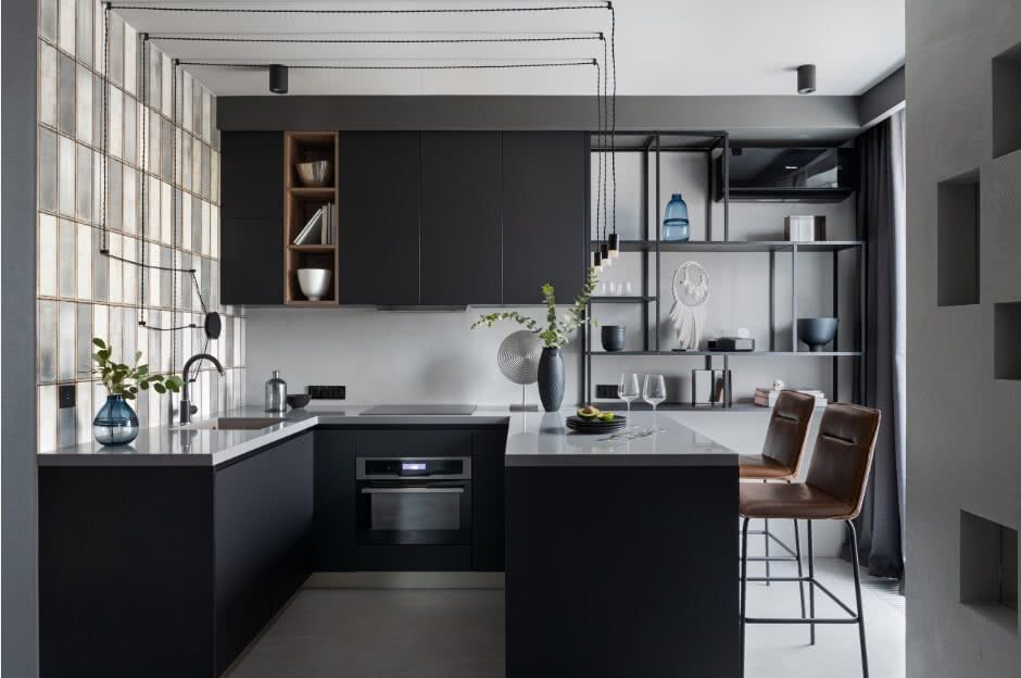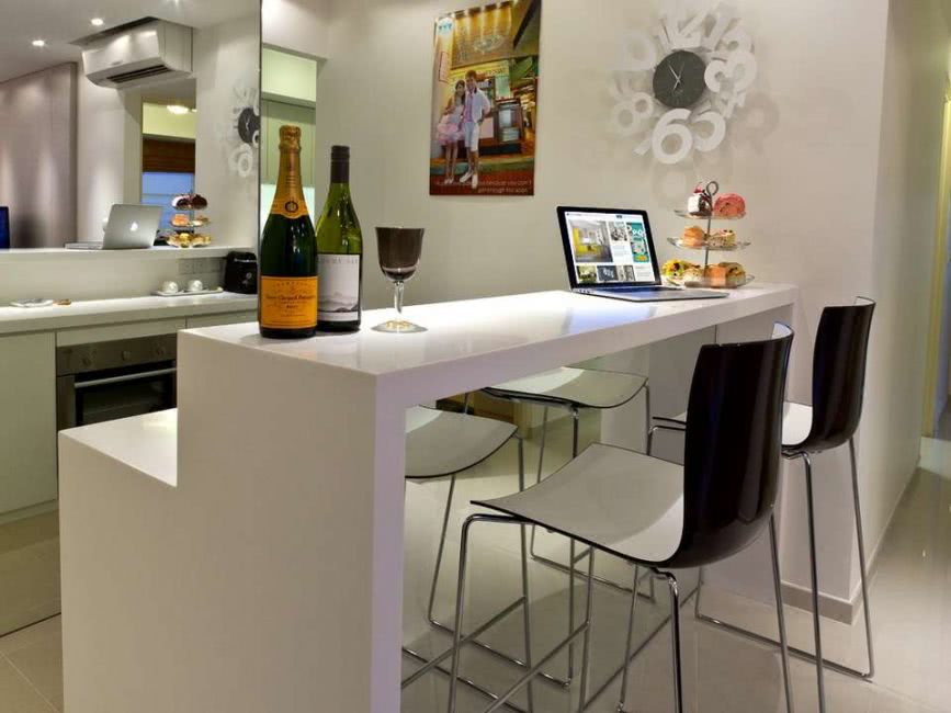 Как уже было сказано, кухонная барная стойка – идеальное решение для малогабаритных квартир, где важно функционально оформить все имеющееся пространство.