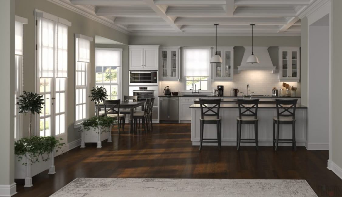 Наконец, физические перегородки тоже служат для зонирования. Иногда это барная стойка, но далеко не всегда – не для всех типов планировки ее можно удачно расположить поперек комнаты. Для некоторых решений приходится ставить стойку вдоль стены. Тогда дополнительным разграничением может стать арка, балки или колонны. Они хороши, если вы сможете сделать их функциональными – например, от балок можно провести освещение, а внутри арки или колонны может храниться посуда. Однако часто физические разграничения мешают в маленькой кухне – они отнимают дополнительное пространство и делают передвижение по комнате не слишком удобным.
