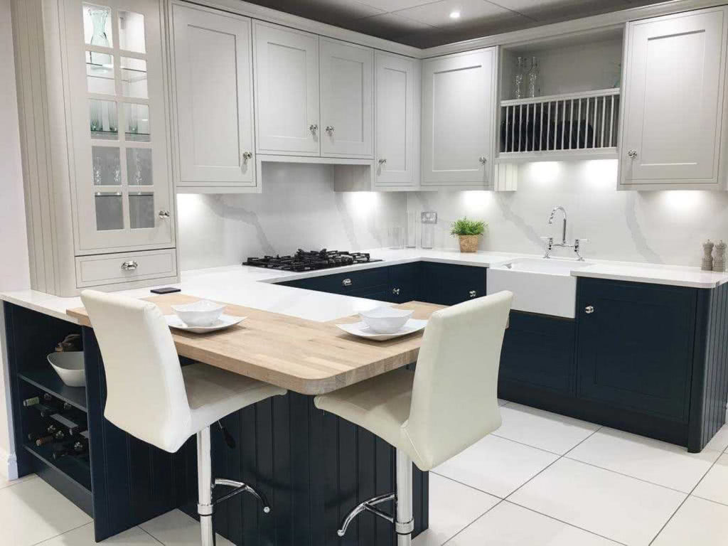 Встроенная в гарнитур барная стойка может быть выше уровня столешницы.