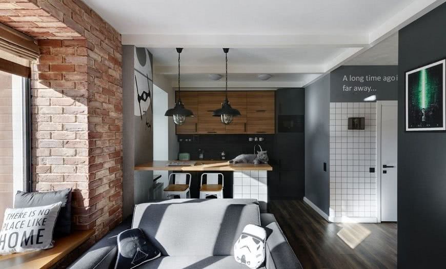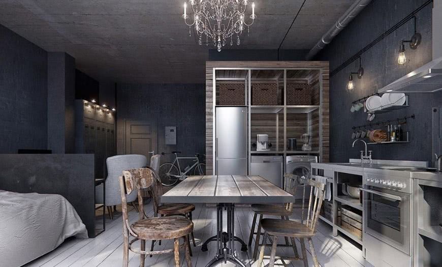 Посмотрите на удачные примеры микса минимализма и индустриального стилей: