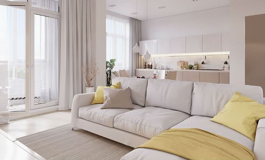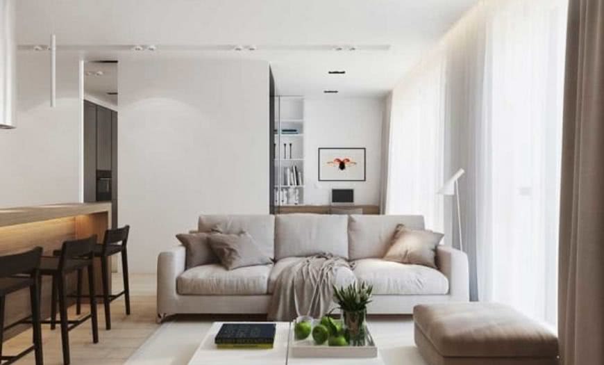 Классика в небольших квартирах-студиях — светлые оттенки. Среди популярных вариантов: