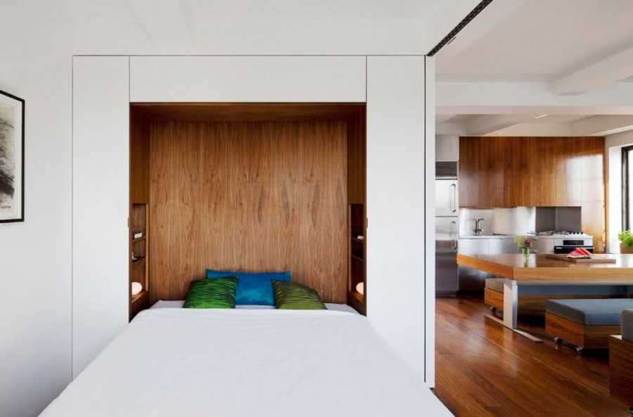Откидная кровать в нише квартиры-студии современного стиля