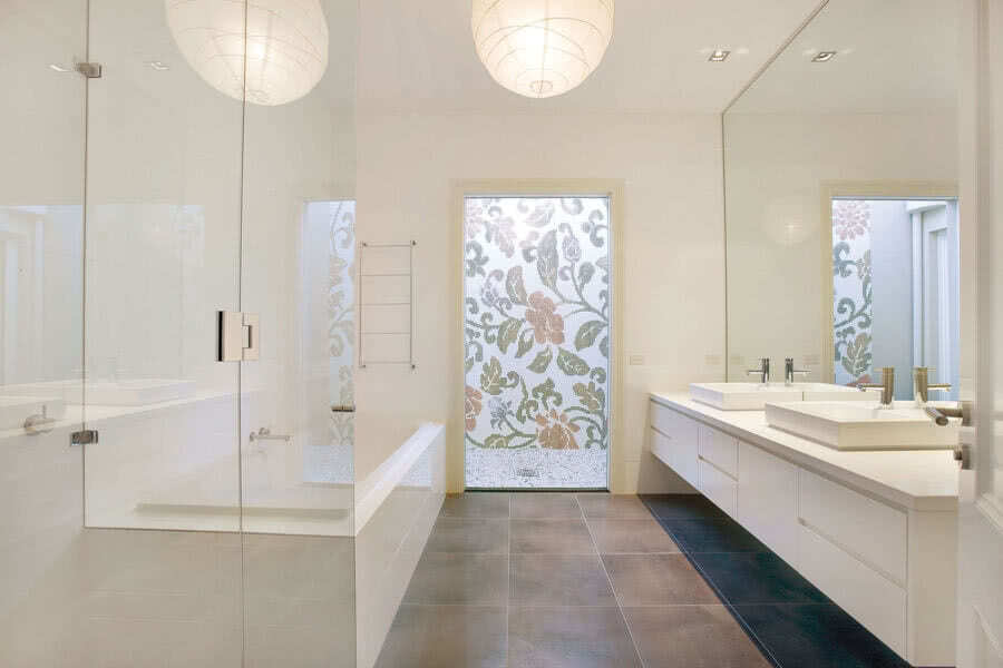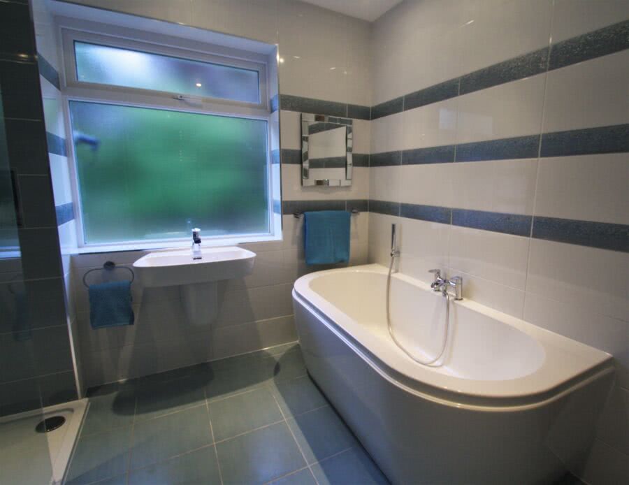 - Просторная ванная становится просторней при наличии дневного освещения, которое проходит через окна.