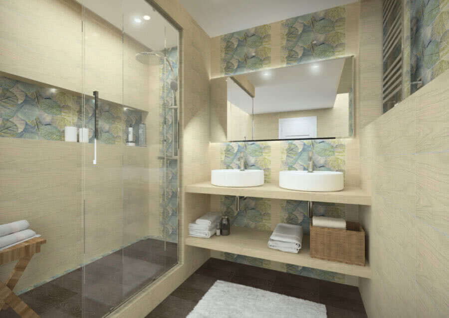 - Выбирать влагоустойчивые и неприхотливые материалы – керамика, пластиковые панели, ламинат;