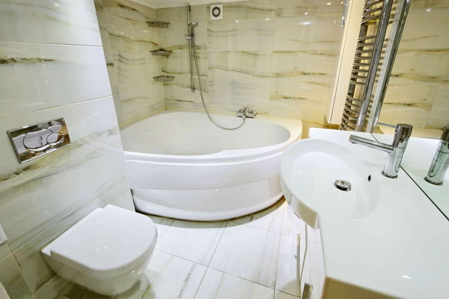 Сэкономить пространство маленькой ванной здорово помогает угловая сантехника