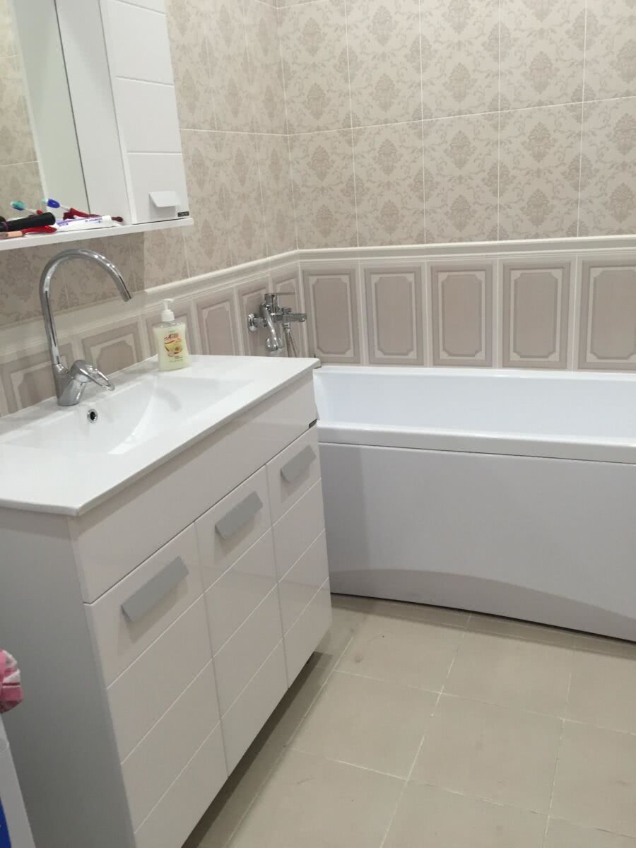 Ванная комната с гарнитуром в кремовом цветеИсточник yandex.kz