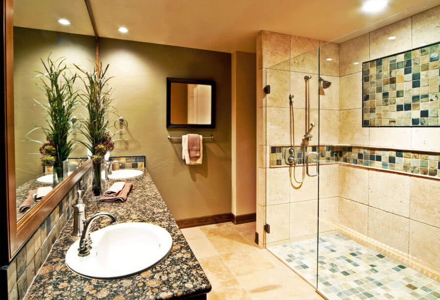 Цвет играет важную роль. Он является составной частью дизайна ванной комнаты в 5 квадратов. Для ванных комнат популярными остаются оттенки мебели: