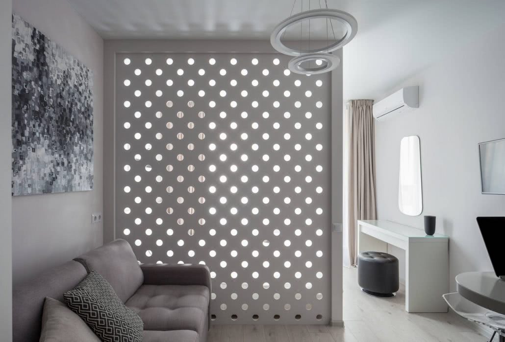 Начать разграничение в гостиной нужно с тщательного планирования того, где разместится мебель, как смонтировать грамотное освещение и что поможет расширить пространство визуально. Для гармоничного благоустройства делить комнату на более чем две не нужно.