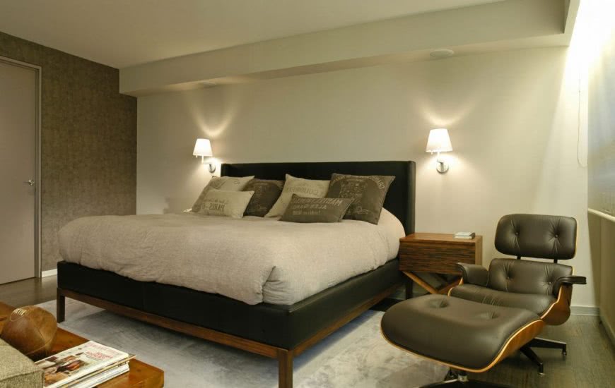 Владельцам квартиры с высокими стенами очень повезло, так как они могут эффектно разделить спальню и гостиную при помощи создания нового уровня. Отлично смотрятся этажи, которые расположены выше уровня гостиной. К такой спальне ведет лестница.