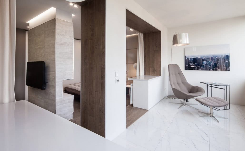 Важно стремиться сделать помещение как можно просторнее. Для этого рекомендуется использовать многофункциональную мебель, потайные фасады для гардеробных, ниши