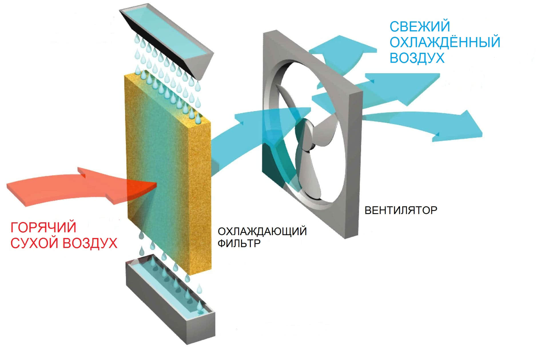 Действие увлажнителей, имеющих адиабатический принцип работы, базируется на естественном процессе испарения. Поток воздуха поглощает влагу, впоследствии перерабатывая ее в пар. Так как указанный процесс требует немалых энергозатрат, он сопровождается понижением температуры воздуха в помещении.