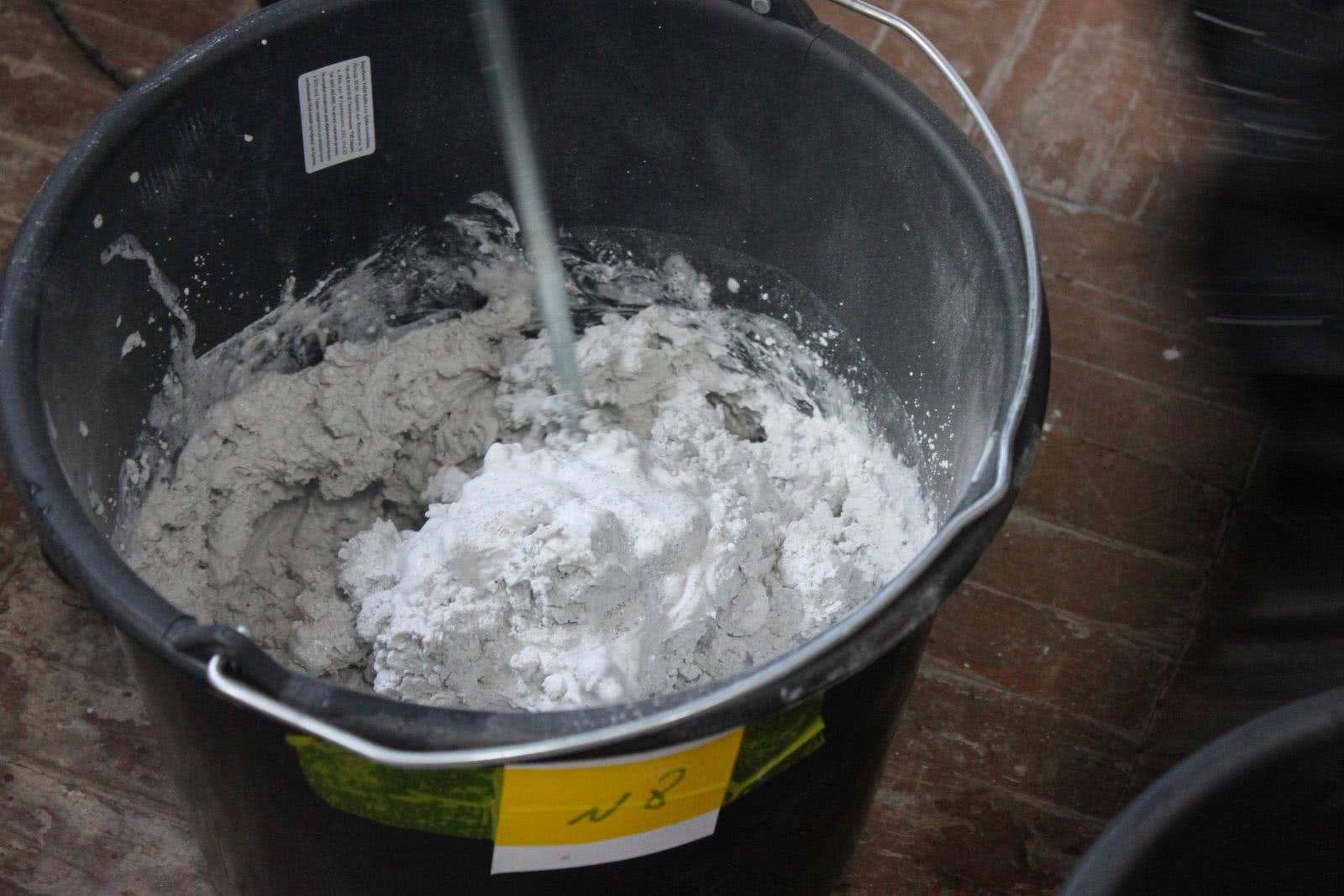 - Отдельную ёмкость используют для растворения 4 литров воды. В ней растворяют известь.