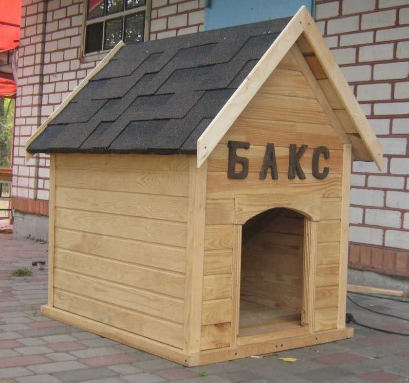 - в форме прямоугольника или квадрата с двускатной крышей. Домик понравится собаке, ей удобно будет лежать внутри него и вдоль, и поперёк.