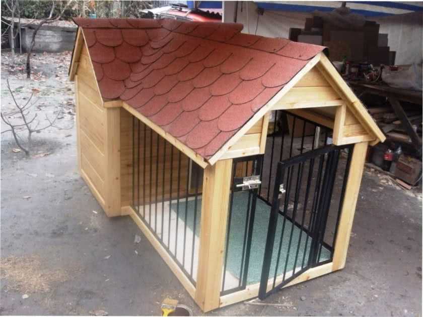 Может быть два варианта: крыша одно — или двухскатная. Наиболее подходящая односкатная, так как многие собаки любят на ней лежать и контролировать территорию.