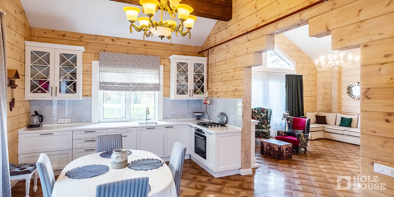 Стены оставляют деревянными, окрашивают в светлые цвета.