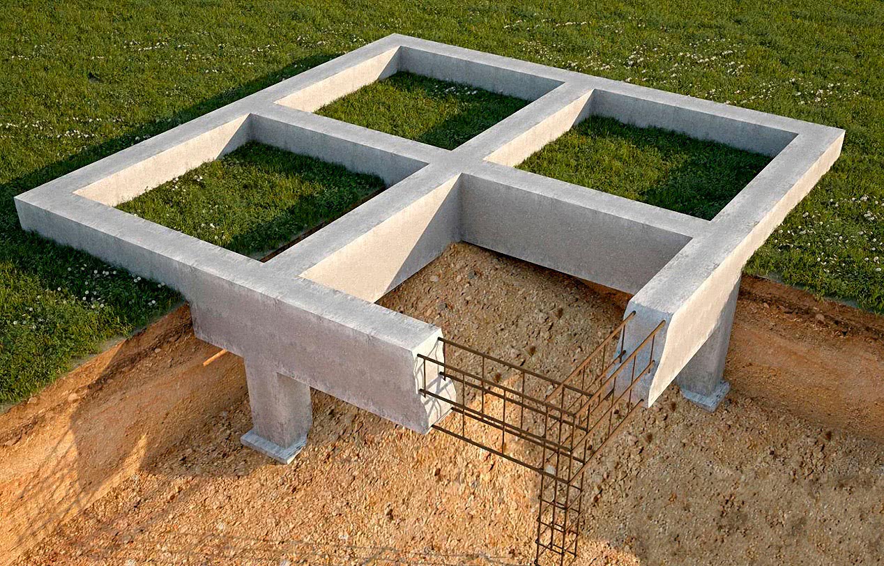 Для неустойчивого грунта отличным решением станет использование основания на основе железобетонных плит.