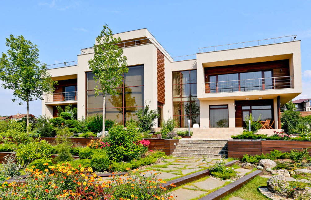 Если здание расположено на исторической территории, необходимо соблюдать цветовую гамму, характерную для данного района. Традиционно для домов, находящихся за городом, самым приемлемым решением станет применение неярких пастельных оттенков.