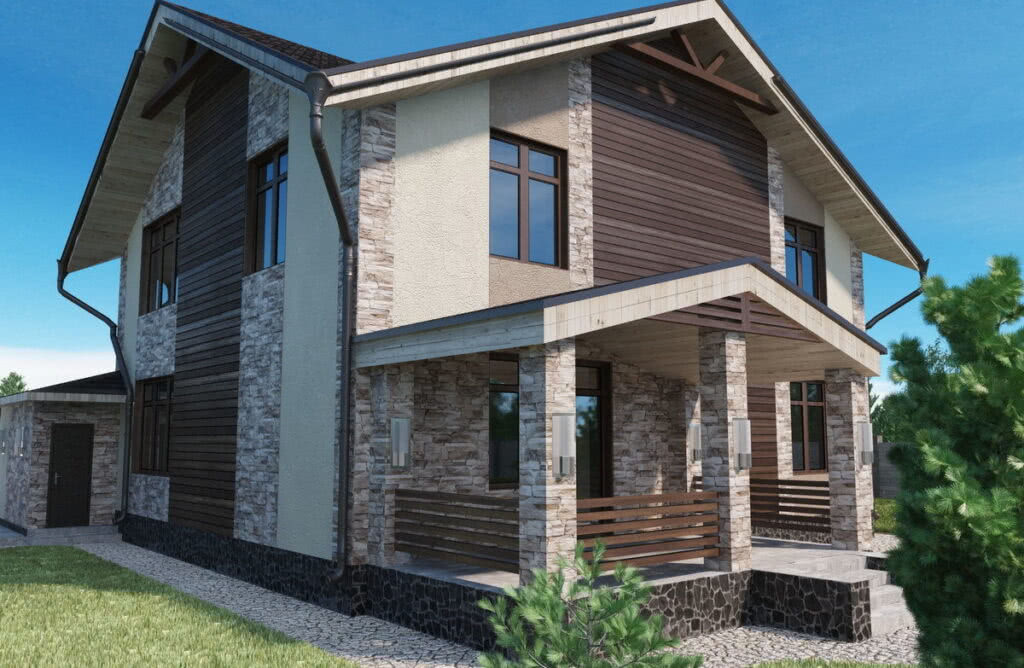 Приобретая проект дома с каменной отделкой, необходимо учитывать, что натуральный камень для облицовки фасада стоит недешево. Отличной альтернативой станет искусственная порода, незначительно уступающая по качественным показателям природным минералам. Мы поможем вам подобрать оптимальный вариант проекта дома подходящей площади и этажности.