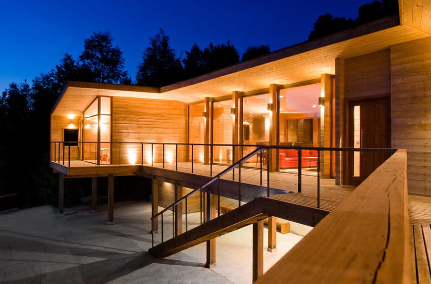 Такой формат строения следует выбирать для дачного или гостевого дома. Используя приемы визуального зонирования и перегородки, можно обустроить внутри, кроме жилого помещения, небольшую кухню и совмещенный санузел.