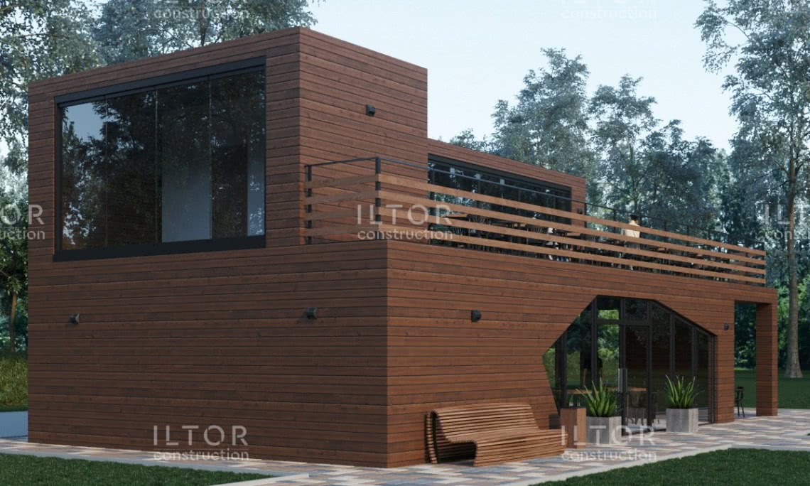 Морской контейнер изначально обшит снаружи профлистом. Индустриальный дизайн фасадов часто не устраивает владельца, используются облицовки, имитирующие природные, искусственные материалы высокой декоративной ценности: