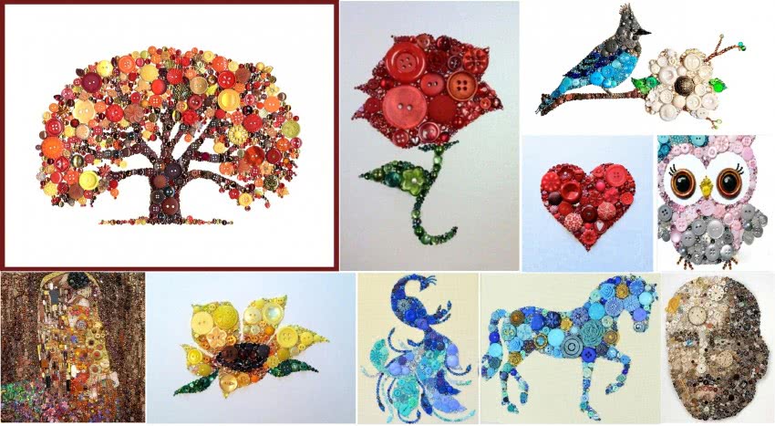 Удивительным образом мозаичные элементы, созданные из интересных по фактуре и форме пуговиц, послужат достойным украшением дома. Такой декор интересен мобильным творческим людям с нестандартным мышлением.