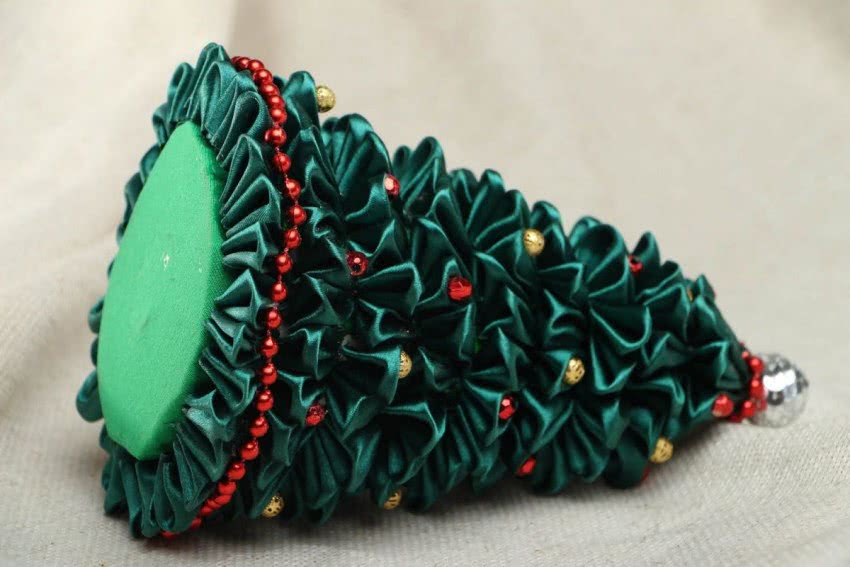 Для работы вам также понадобятся: широкие цветные ленты (бархат или атлас), ножницы, нить, иголки, кусачки, клей и зажимы для декора.
