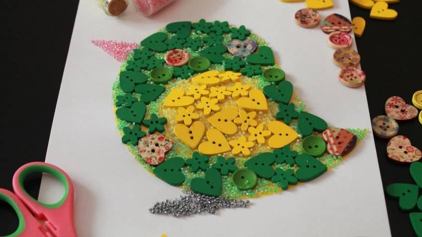 - Детали приклеиваем к верхней части полотна, воспользовавшись клеем.
