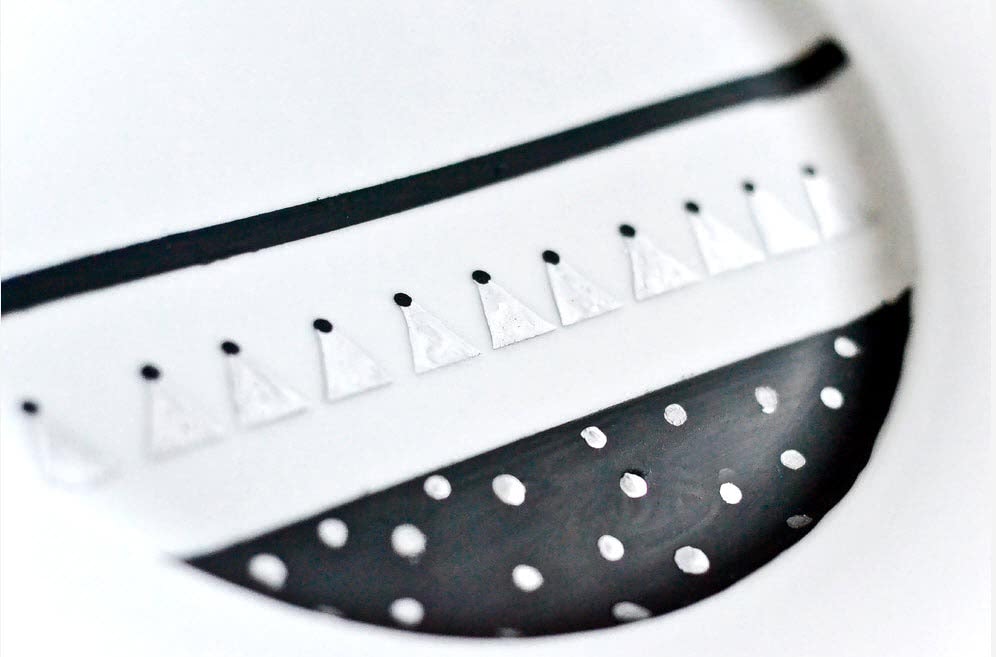 - Рисуем зрачки на глазках с помощью черной краски.