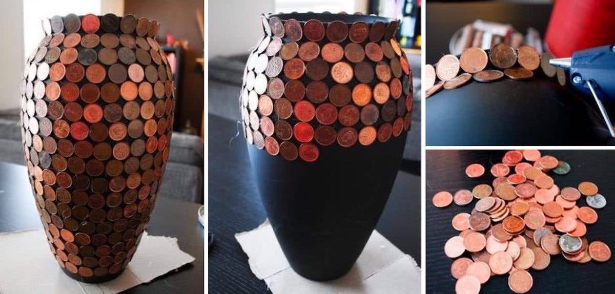Удивить домочадцев и друзей удастся, если использовать собранные монеты для декора вазы