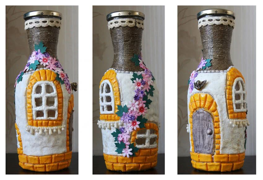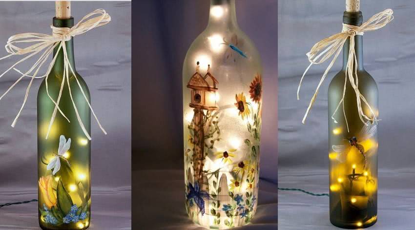 Удивительный по красоте ночник из стеклянной бутылки