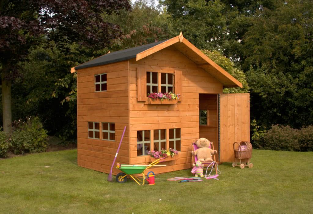 Дети без ума от домиков, сооруженных на ветках деревьев. Если такой прямой возможности нет, то можно его просто поднять на определенную высоту. Кстати, в таком варианте исполнения домик может защитить поленцу дров.