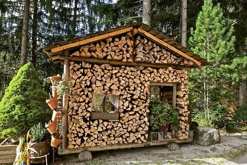 Существует несколько видов построек для дров на даче. Отдельно стоящий сарай с дверью называют дровяником, небольшую подставку или корзину под расходную часть запаса топлива – дровницей, а навес для сушки и хранения дров – дровником.