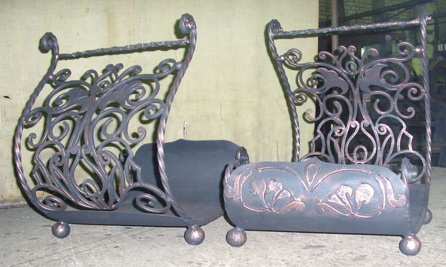 На рынке представлены многочисленные варианты кованных изделий, среди них есть настоящие произведения искусства с плавными линиями, ажурными узорами. Отличаются такие модели между собой сложностью исполнения. Мастера предлагают поленницы, которые прекрасно впишутся как в классический стиль, поддерживаемый в интерьере, так и современный. В продаже есть дровницы квадратной формы, круглые, овальные, в форме полумесяца.