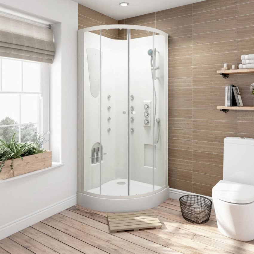 - У круглой кабины самые компактные габариты. Если позволяют очертания помещения, то ее установка станет самым разумным решением, особенно если модель угловая.