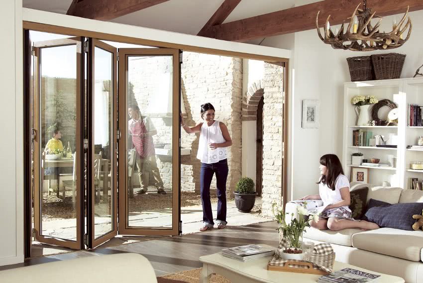 В загородных домах деревянная дверь гармошка тоже может оказаться как нельзя кстати. Если есть потребность устроить дополнительный вход с сада или с веранды, распашные двери могут оказаться неудобными, так как займут существенную часть свободного пространства. «Гармошки» же не займут лишнего пространства. Правда, этот вариант может оказаться неприемлемым для регионов с холодными зимами, так как складные двери гармошки будут пропускать холод.