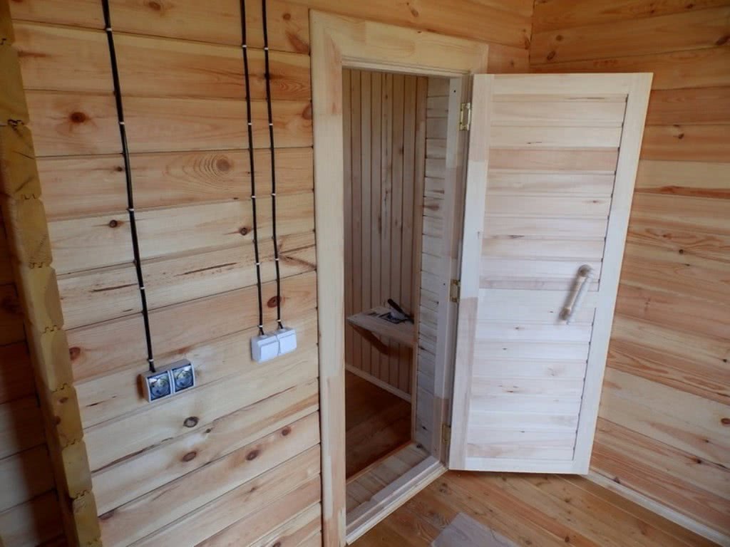 А в финской все ровно наоборот. В ней положено сквозить, да так, чтобы за час пять раз воздух полностью обновлялся. Разумеется, при этом он должен успевать нагреваться до 90 градусов. Поэтому печка работает вовсю, конвекция быстро нагревает воздух, значит, приток должен быть достаточный. И снова дверь — тот самый элемент, который может помочь.