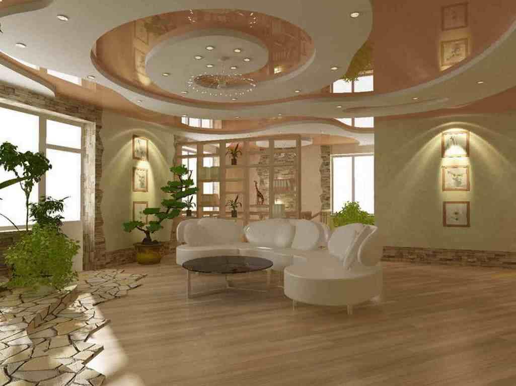 Волны. Кривые, изогнутые линии и волны используют для создания оригинальных стилистических решений. Подобные узоры замечательно смотрятся в классических стилях. Если отсутствует необходимость в зонировании, можно выбрать более выразительный и художественный вариант. Чтобы подчеркнуть эстетический эффект на потолке, можно оформить подобный изгиб на полу. Он может красоваться на ковре или любой другом отделочном материале (паркет, ламинат, линолеум).