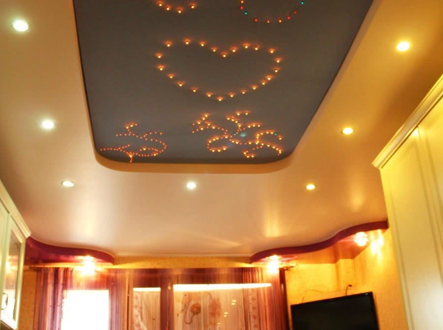 Выбор оформления потолков поистине богат. Кроме того, двухуровневые конструкции с подсветкой универсальны. Для каждого помещения можно подобрать идеальный дизайн с использованием фигур, изображений, различных цветов и вариантов подсветки.