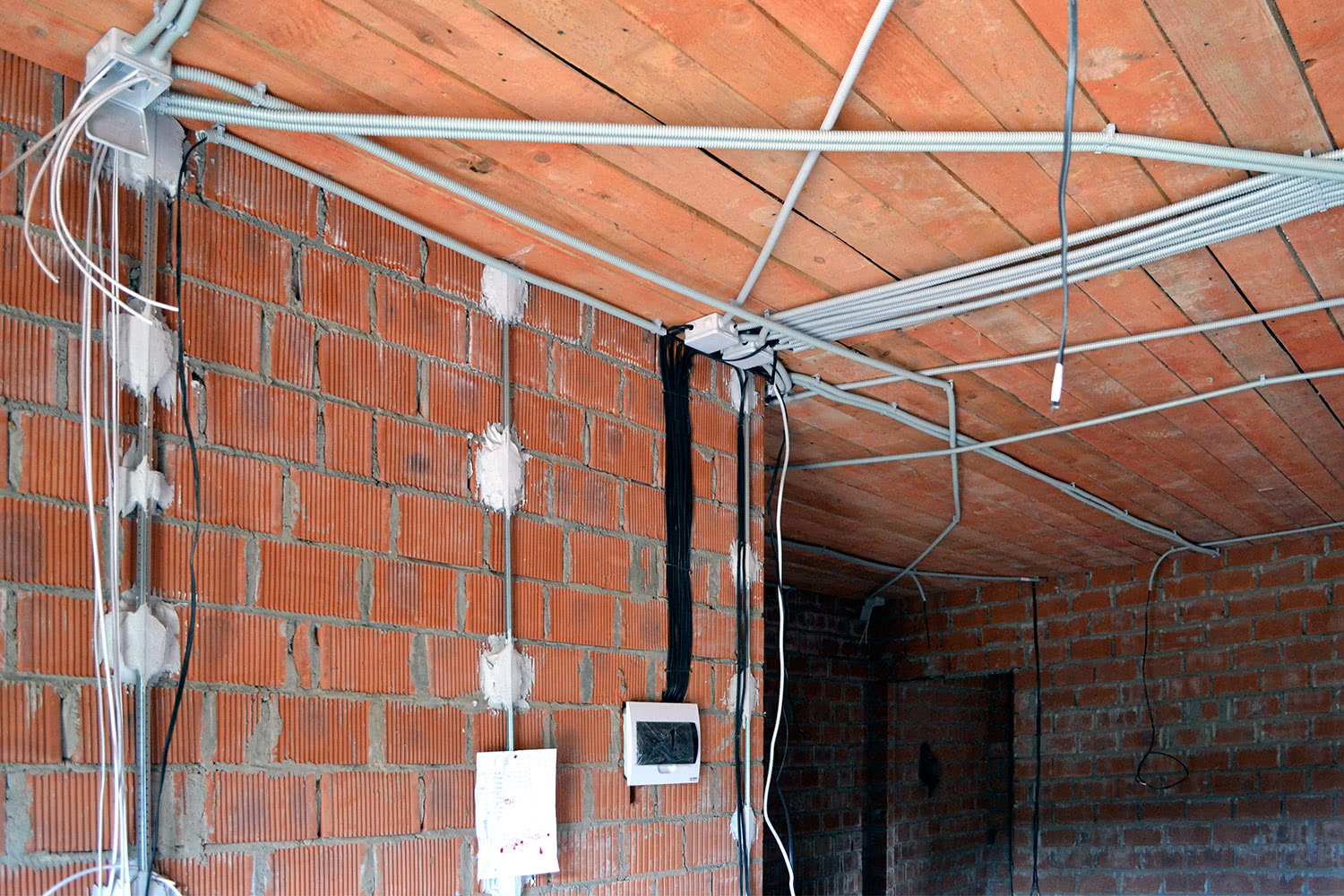 - Трубы для электропроводки в деревянном доме нужно соединять друг с другом в металлических соединительных коробках. Для удлинения трасс трубы соединяют на резьбе или сваркой.