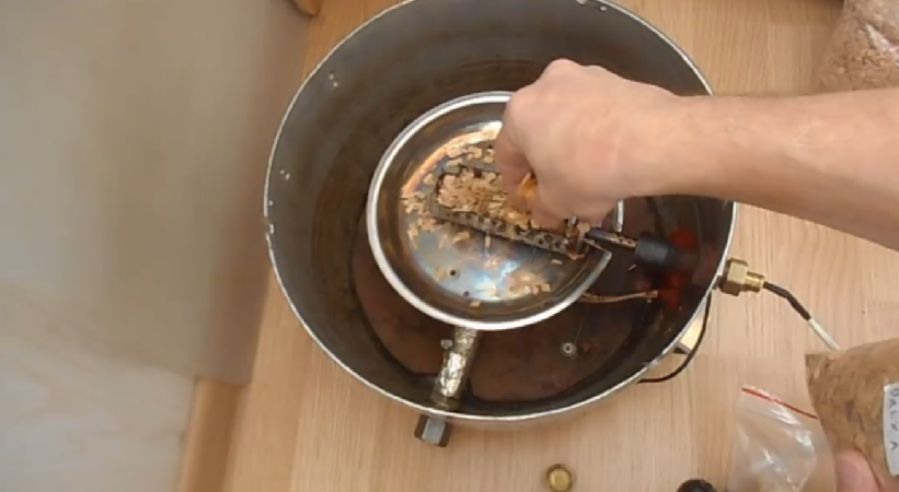 - на дне камеры, и опилки сыпятся прямо на ТЭН;