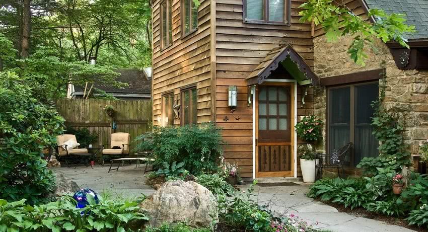 - Небольшой коттедж в кантри стиле с каменной облицовкой.