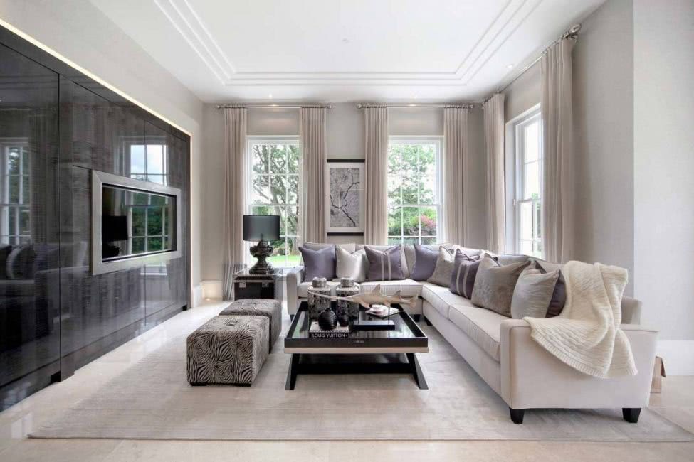 - Сочетания неярких оттенков, стоящих недалеко друг от друга в палитре — серого и голубого, сливочного и бледно-песочного и т. п., — подойдут для классического интерьера.