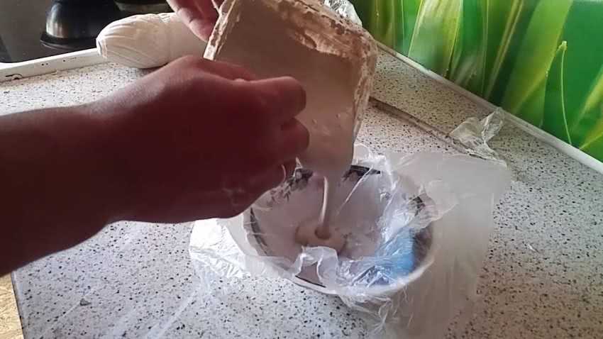 Найдите емкость большого объема, которой будет не жалко и разводите прямо в ней. Если некоторое количество гипса окажется излишним, то из него можно дополнительно сделать еще что-нибудь. Поэтому мело готовьте немного больше вещества, чем нужно.