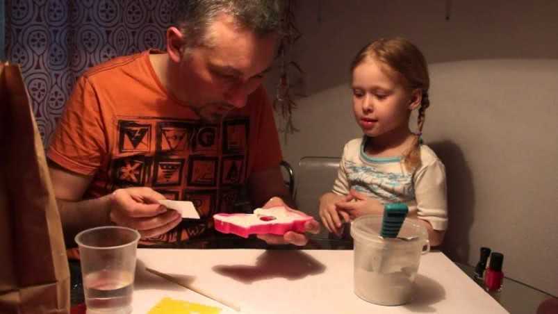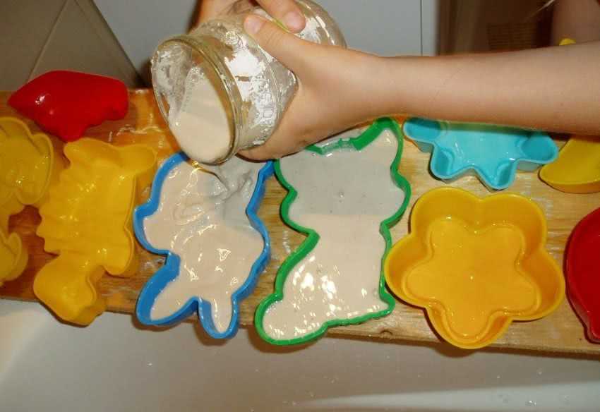 - Непременно необходимо позаботиться о том, чтобы созданный элемент легко отошел от формы. Для чего в отдельную тару натираем мыло и размешиваем с водой и подсолнечным маслом в соотношении 2 к 7 к 1;