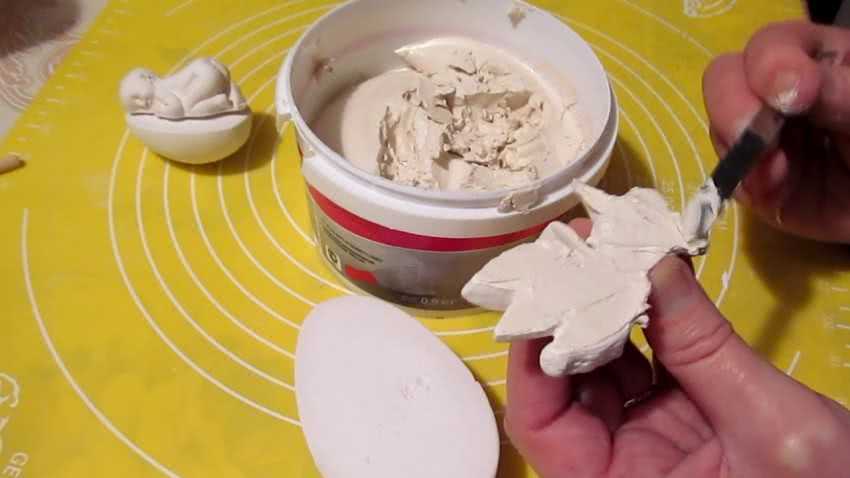 Клей для соединения разных частей поделки должен быть специальным, влагоустойчивым, устойчивым к перепадам температуры. Образовавшиеся пустоты в поделке, при ее извлечении, замазывают гипсовым раствором в соотношении 2 части гипса и одна часть воды.