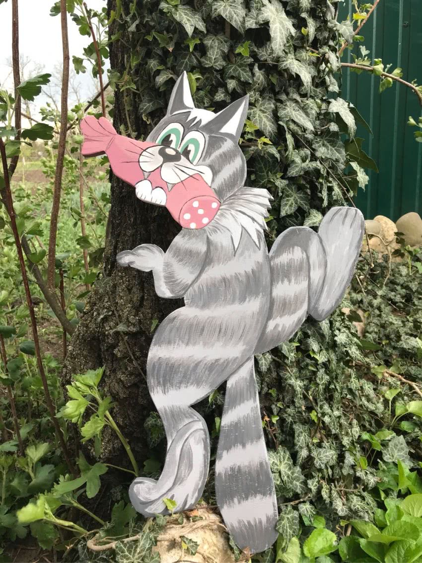 Некоторые предпочитают создавать фигурки из фанеры, вырезая нужный силуэт и рисуя то, что хочется. Такие элементы декора хорошо подходят для детских площадок, веранд. Интересно смотрятся на садовых участках изделия из монтажной пены, однако создавать их весьма непросто. Для этого необходимы определенные навыки и художественное чутье. Такие материалы отличаются легкостью, поэтому нужно будет позаботиться о достаточно тяжелом и жестком каркасе для их создания